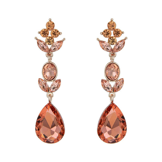 3-Tier Crystal Teardrop Floral Petal Earrings : Crystal