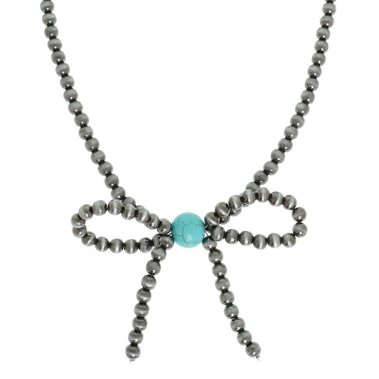 Western Bow Knot Pendant Pearl Bead Necklace : Silver