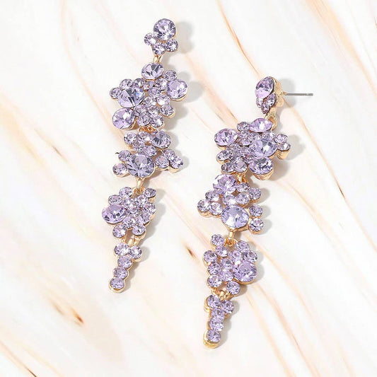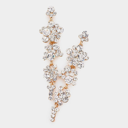 Bubble Stone Cluster Dangle Evening Earrings: Yellow Gold