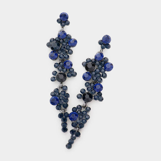 Bubble Stone Cluster Dangle Evening Earrings: Antique Silver