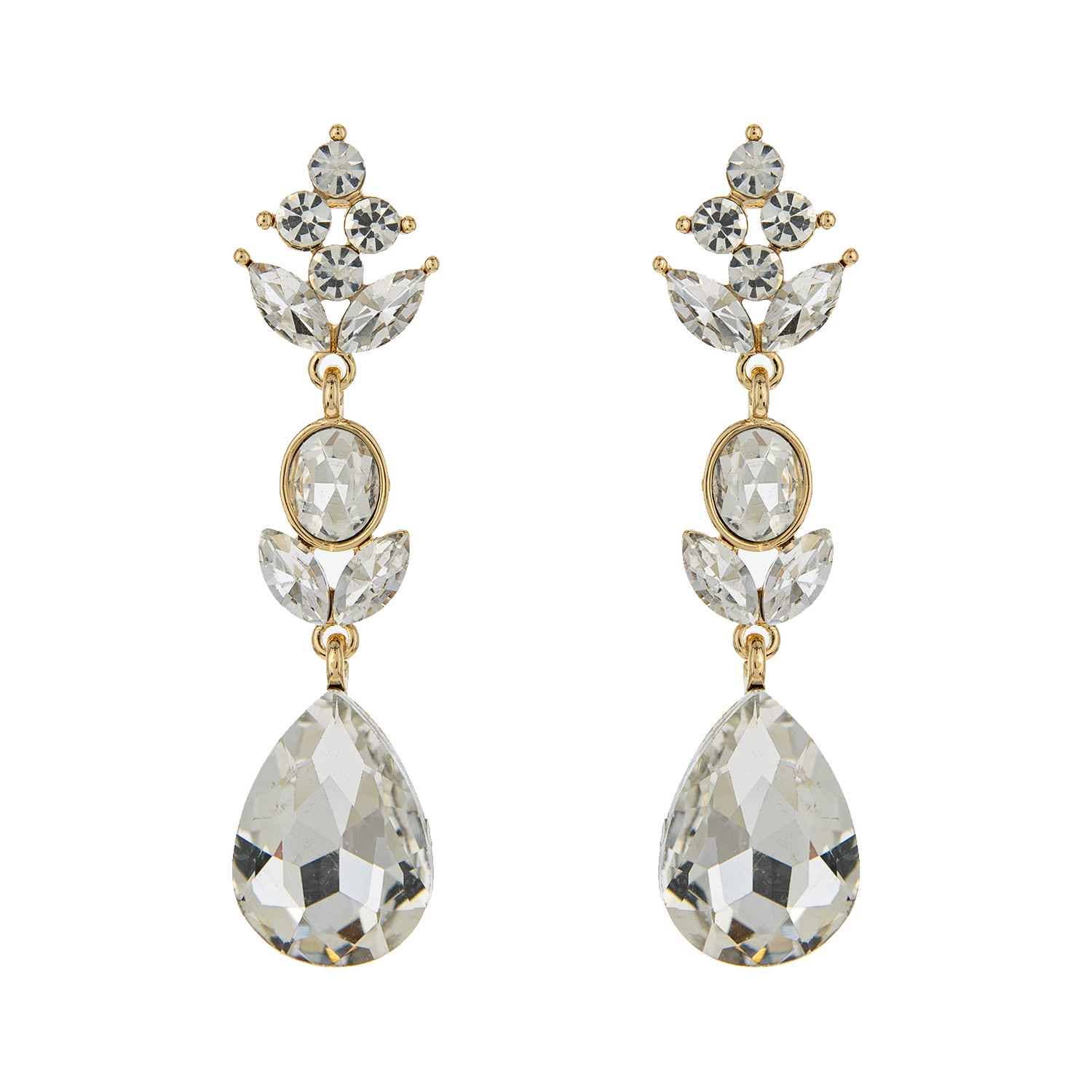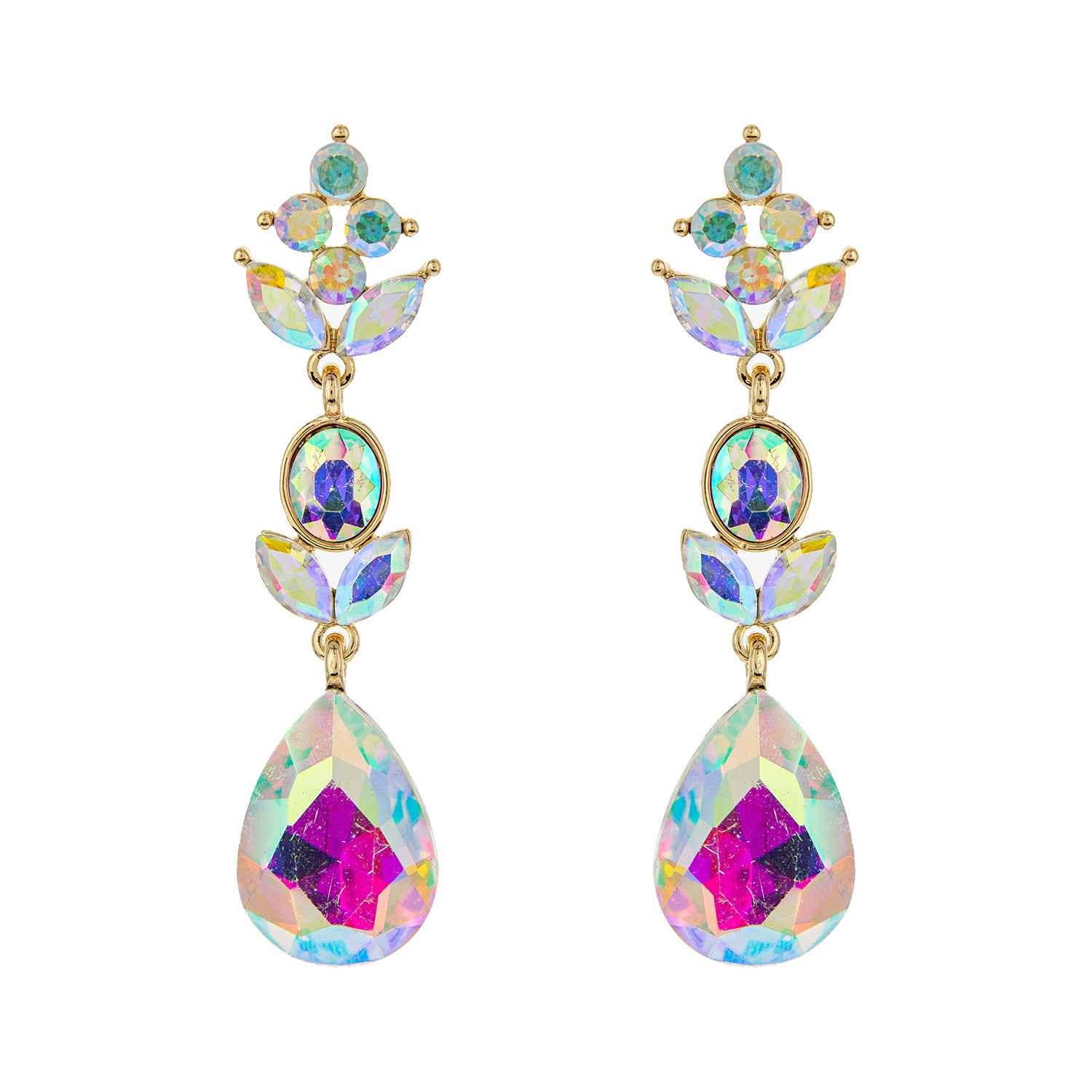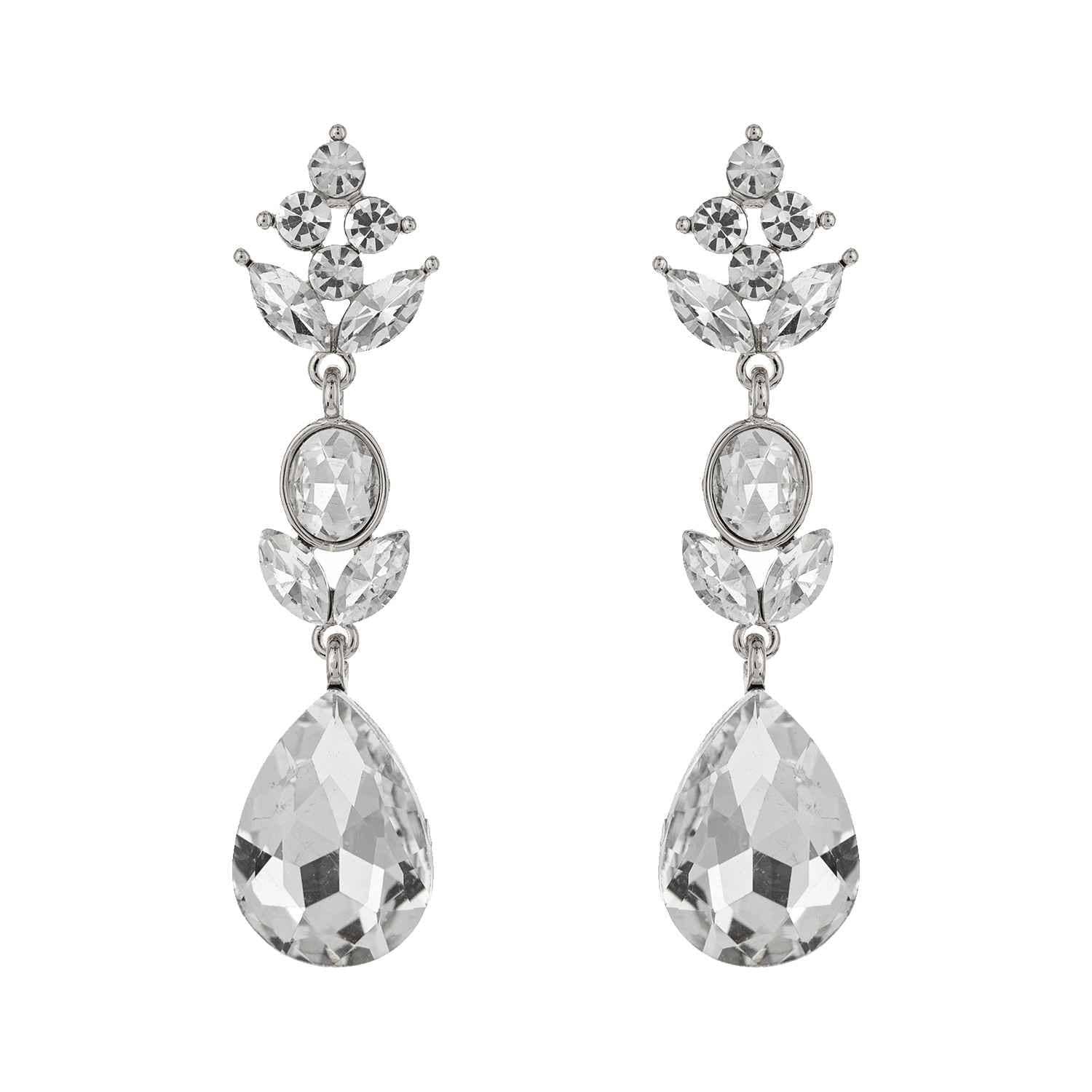 3-Tier Crystal Teardrop Floral Petal Earrings : Crystal