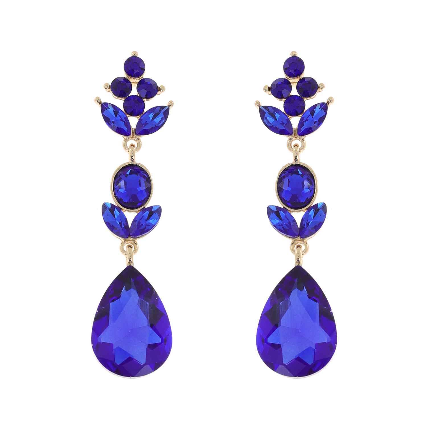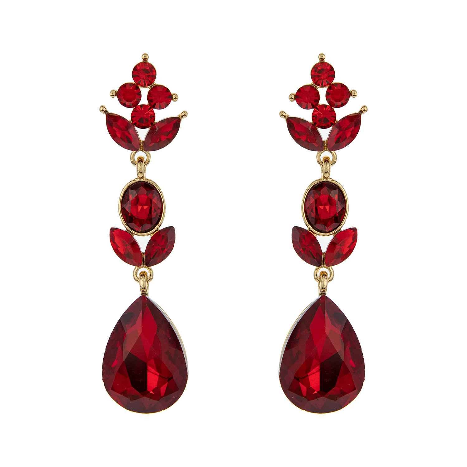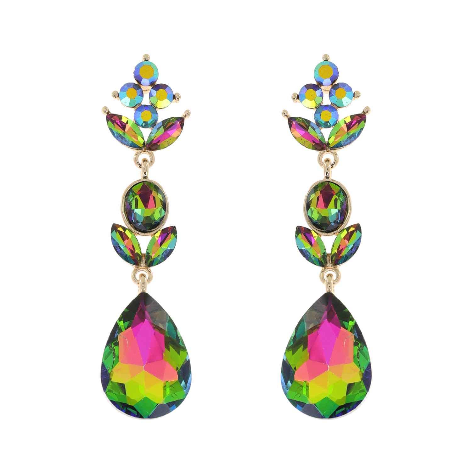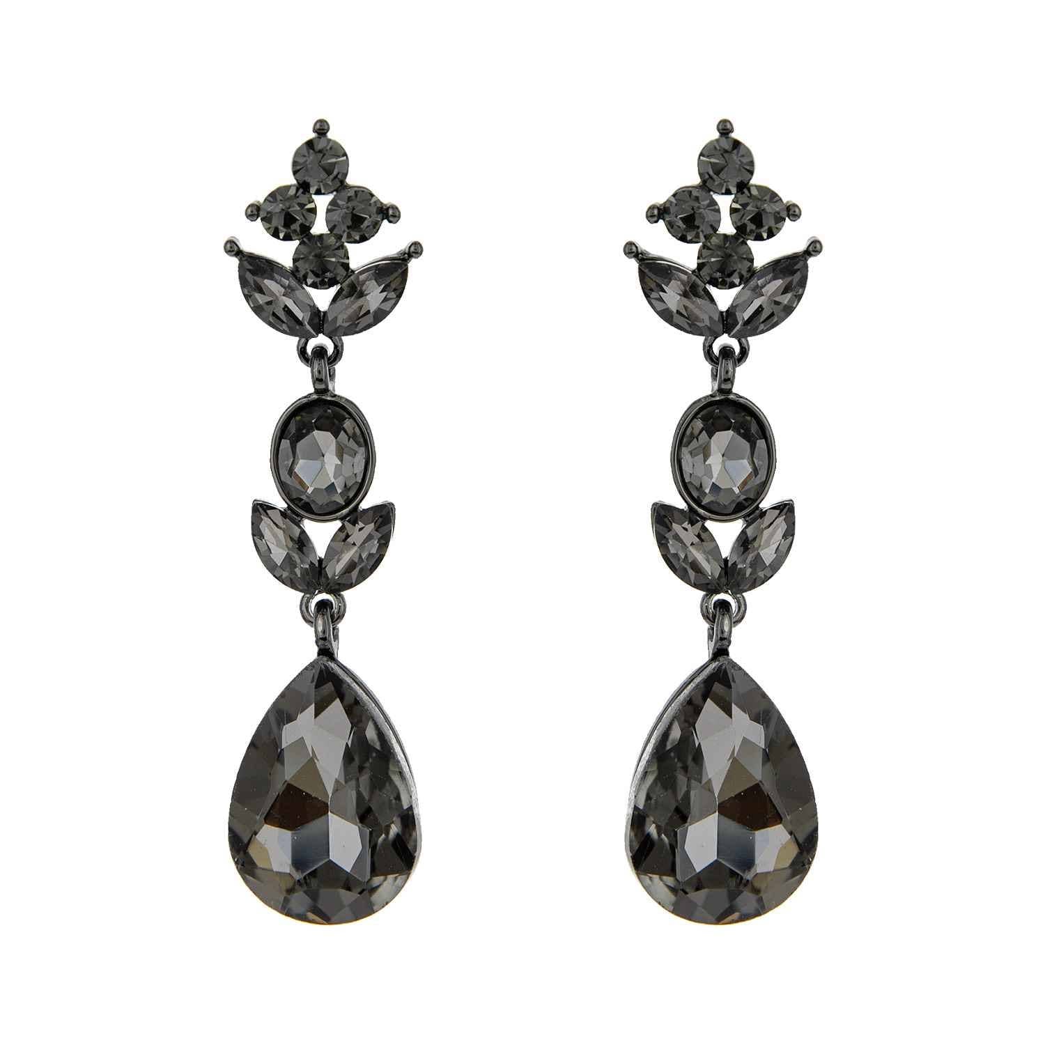 3-Tier Crystal Teardrop Floral Petal Earrings : Crystal
