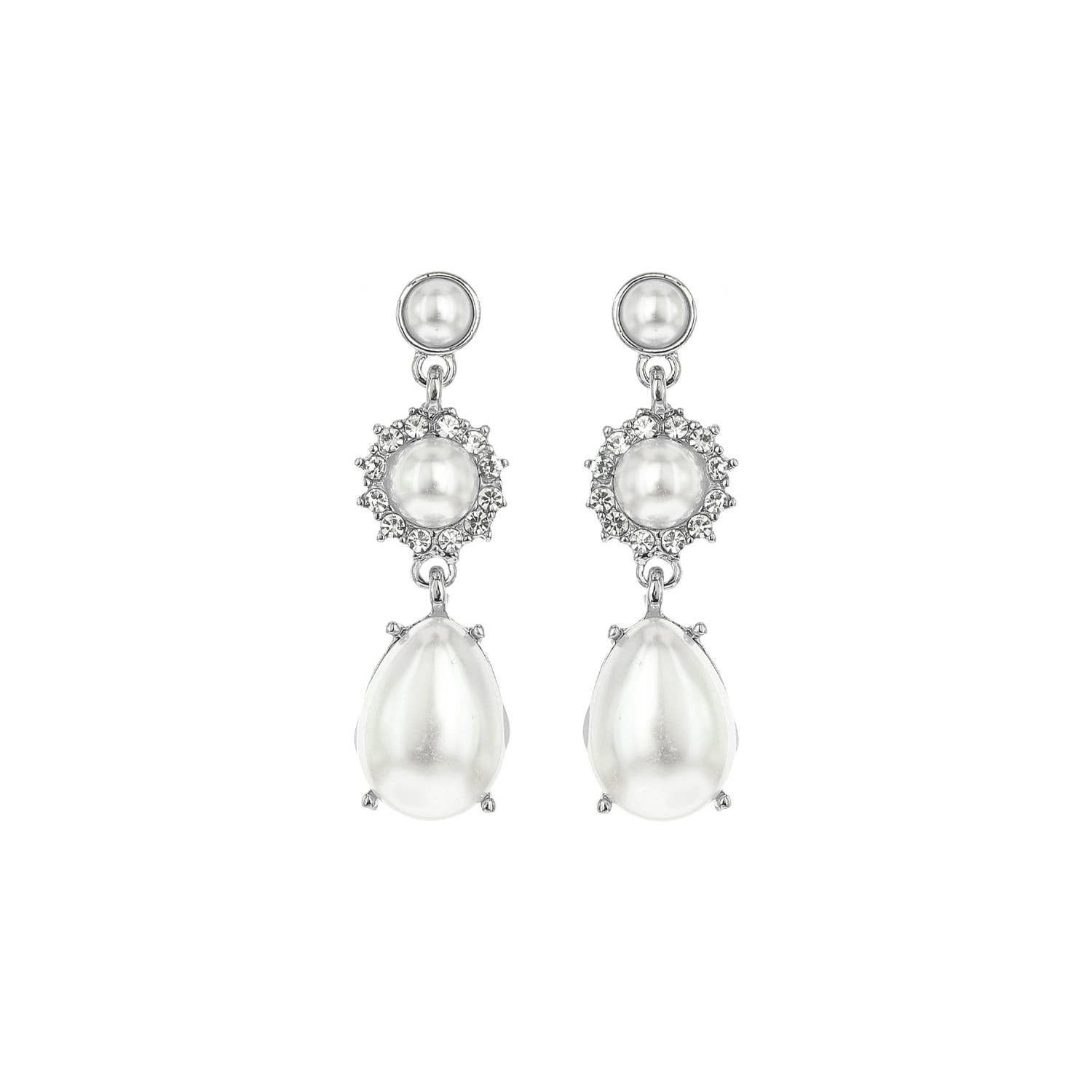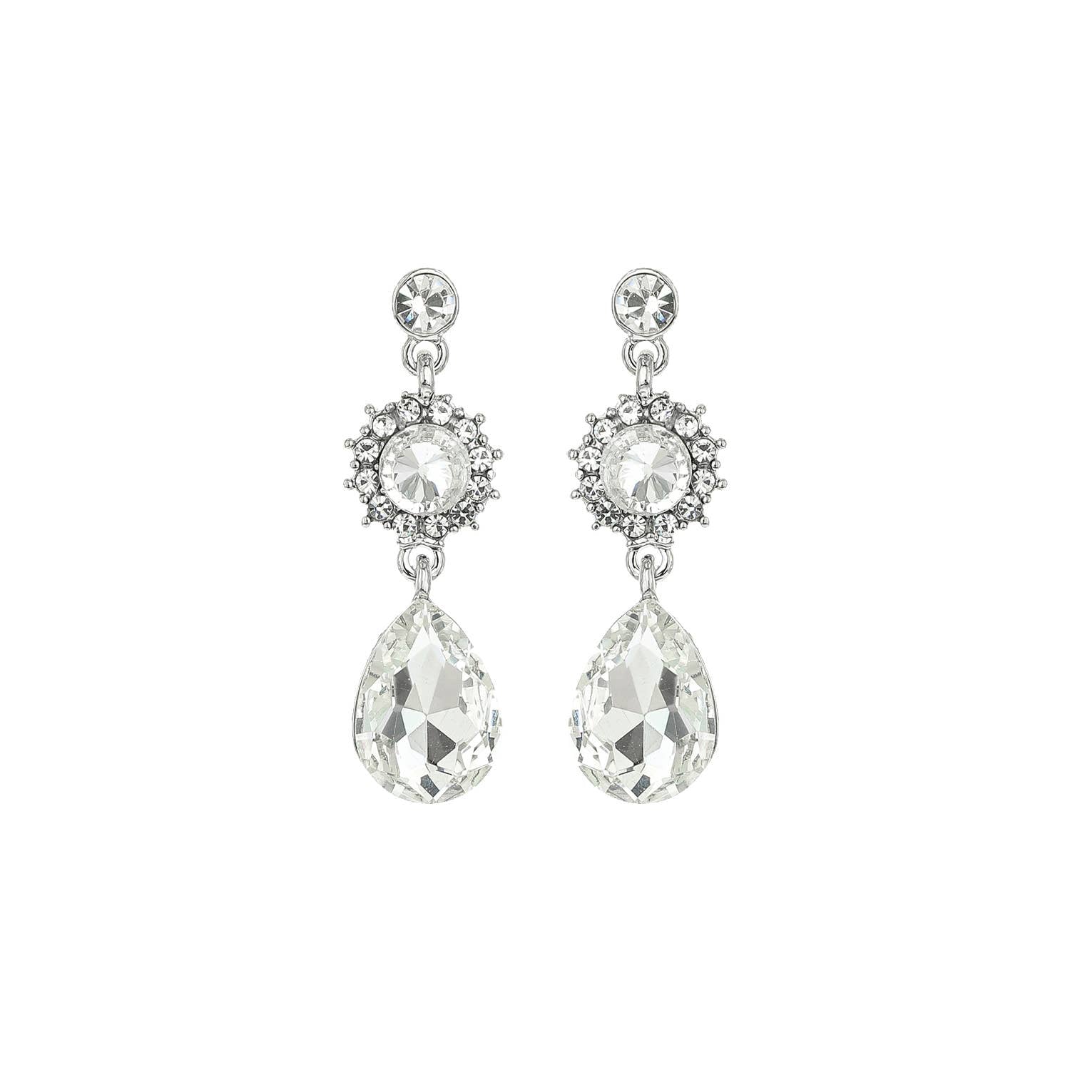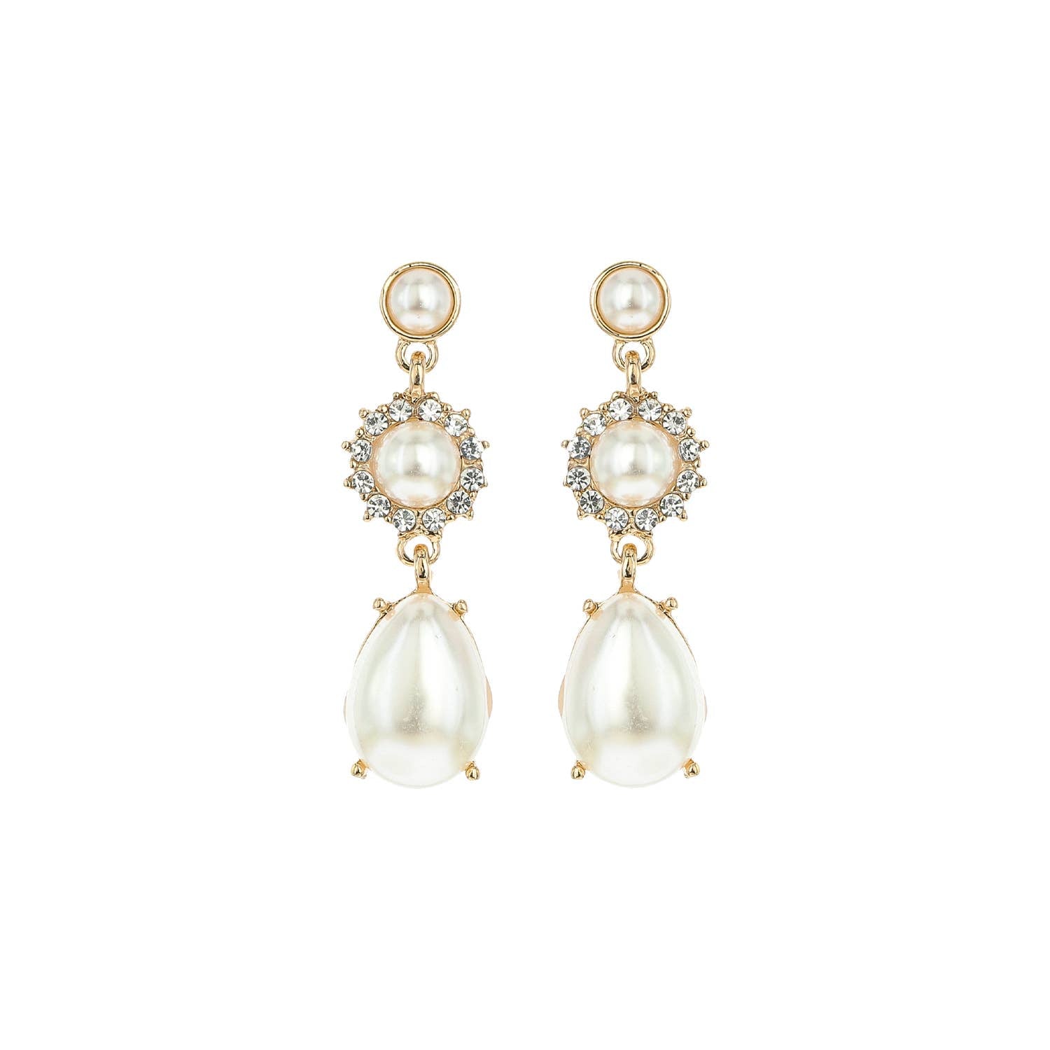 3 Tier Floral & Teardrop Rhinestone Crystal Dangle Earrings: Cream