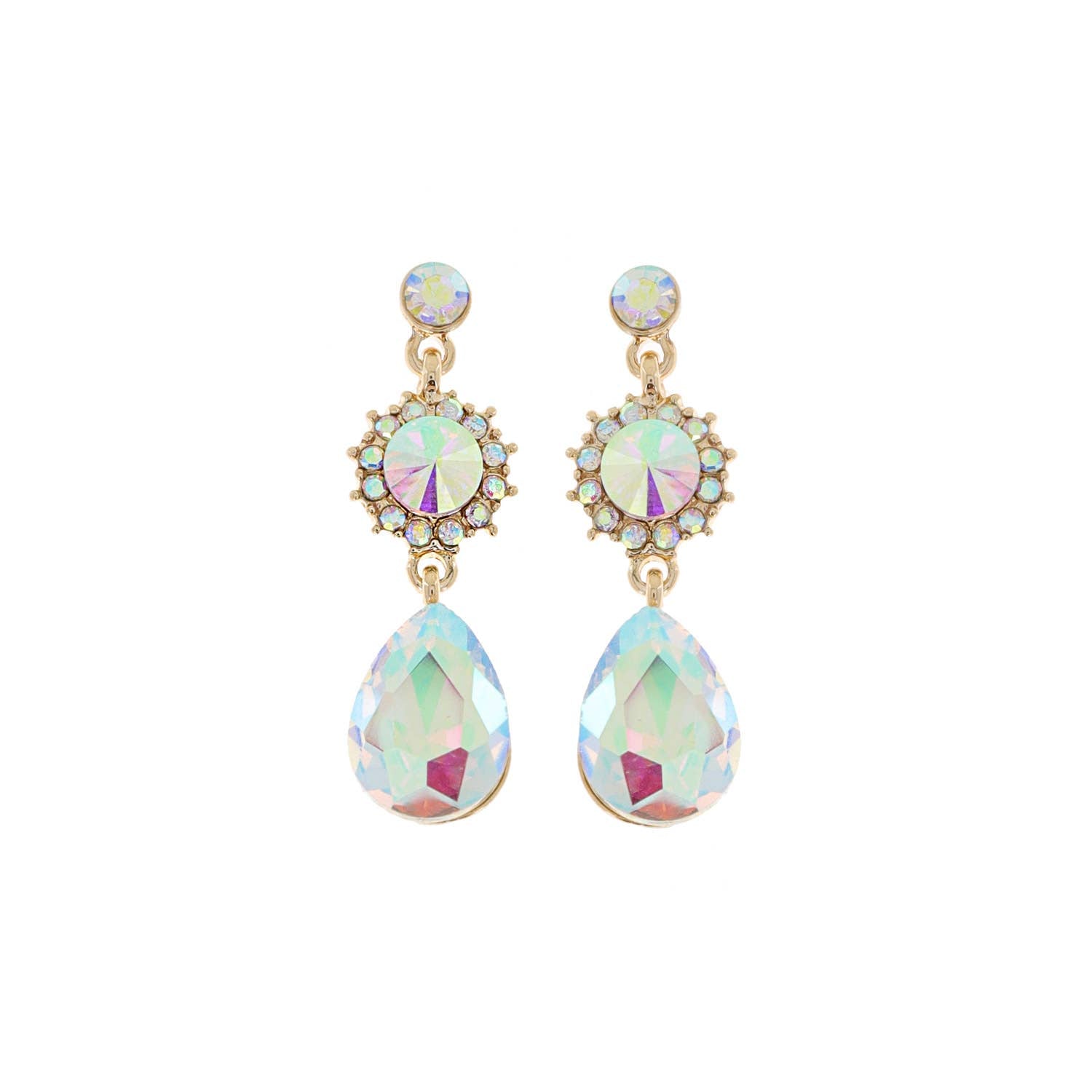 3 Tier Floral & Teardrop Rhinestone Crystal Dangle Earrings: White