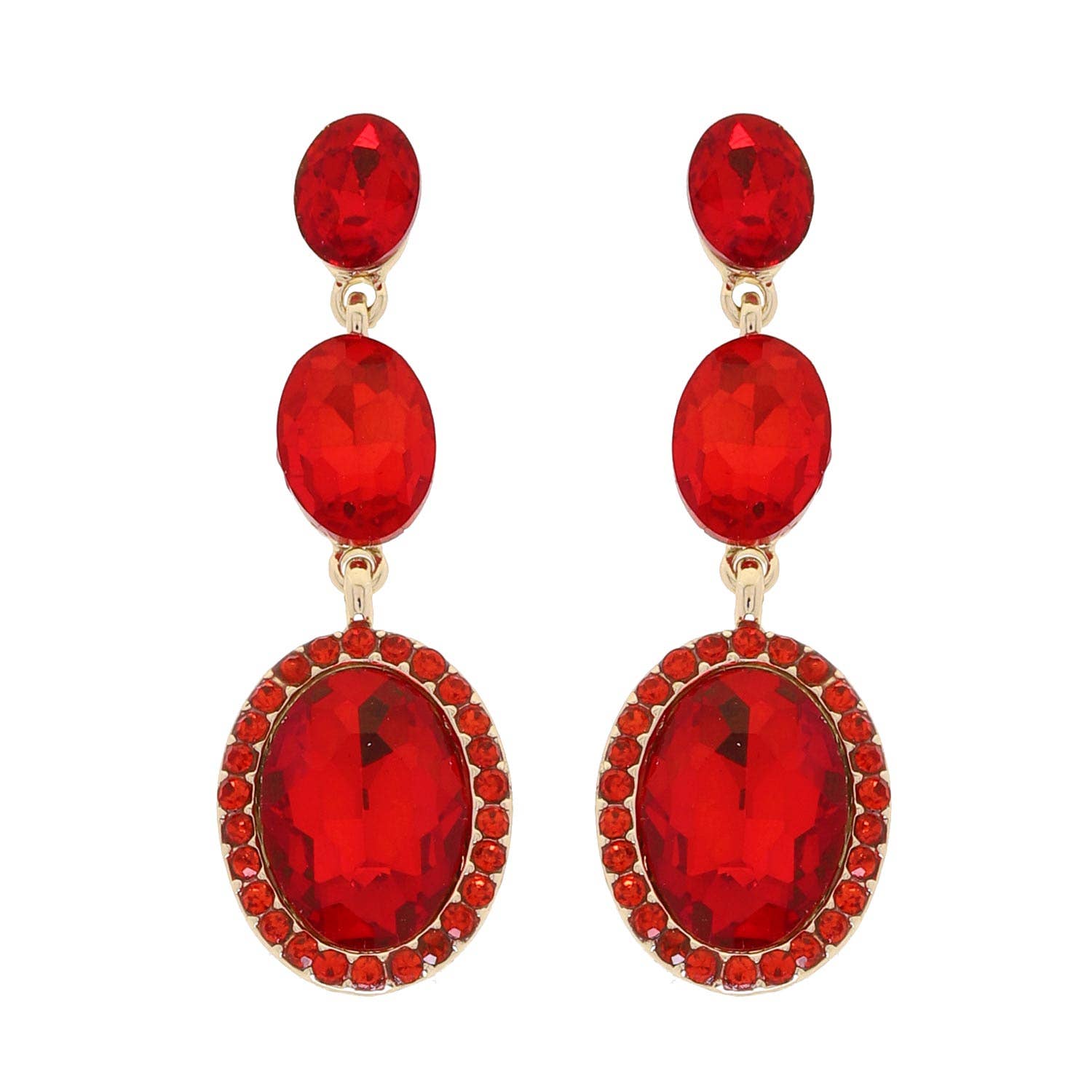Make a statement with our 3 Tiered Oval Cut Rhinestone Crystal Dangle Earrings! These stunning earrings are crafted with high-quality materials and feature a three-tiered design with oval-cut rhinestones and crystals. One of the oval crystals includes a halo of smaller rhinestones, adding an extra touch of glamour and sparkle. The dangle design creates a chic and elegant look, making them perfect for special occasions or formal events. The post backing design ensures a comfortable and secure fit, making them easy to wear all night long. Whether you're dressing up for a wedding or adding some sparkle to your evening attire, our 3 Tiered Oval Cut Rhinestone Crystal Dangle Earrings are a must-have accessory.