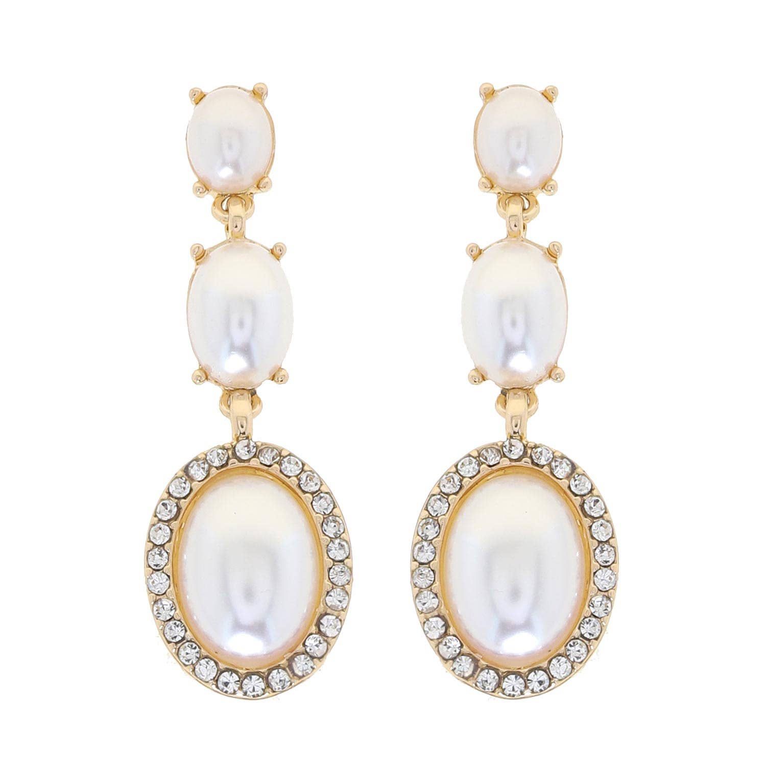 3 Tiered Oval Cut Rhinestone Crystal Dangle Earrings: Gold Cream