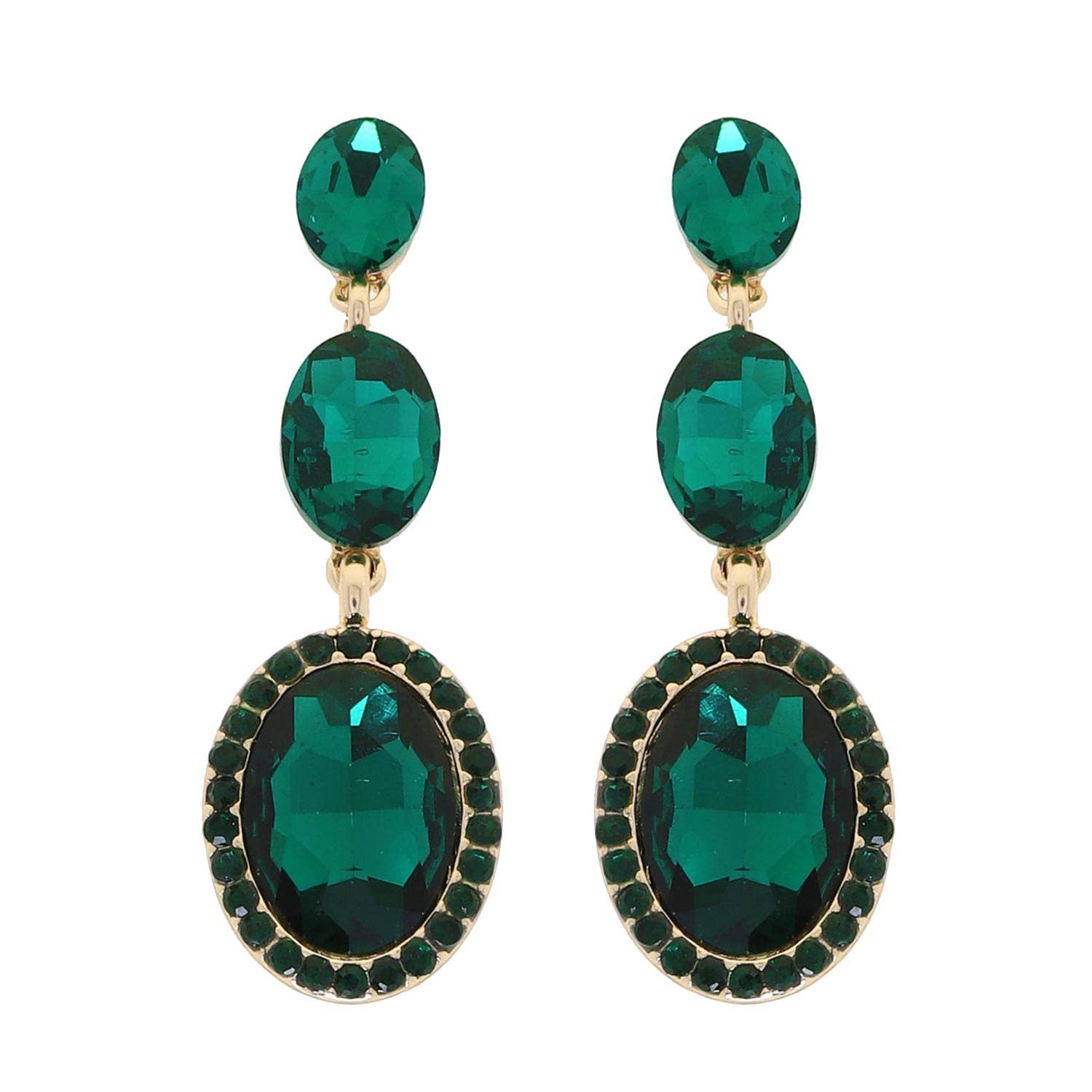 Make a statement with our 3 Tiered Oval Cut Rhinestone Crystal Dangle Earrings! These stunning earrings are crafted with high-quality materials and feature a three-tiered design with oval-cut rhinestones and crystals. One of the oval crystals includes a halo of smaller rhinestones, adding an extra touch of glamour and sparkle. The dangle design creates a chic and elegant look, making them perfect for special occasions or formal events. The post backing design ensures a comfortable and secure fit, making them easy to wear all night long. Whether you're dressing up for a wedding or adding some sparkle to your evening attire, our 3 Tiered Oval Cut Rhinestone Crystal Dangle Earrings are a must-have accessory.