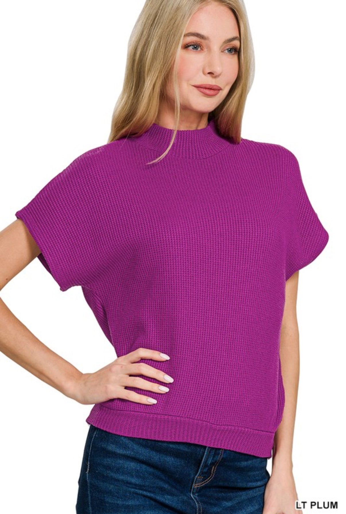 Stay stylish and spirited in our plum mock neck short sleeve sweater, the perfect blend of cozy comfort and small-town football vibes. Its rich plum tone pairs effortlessly with denim or high-waisted skirts, while the mock neck adds a touch of sophistication to your weekend game day or casual outings. Lightweight yet warm, this sweater is perfect for cheering from the sidelines or catching up with friends around town. Show your Strasburg pride without sacrificing style!