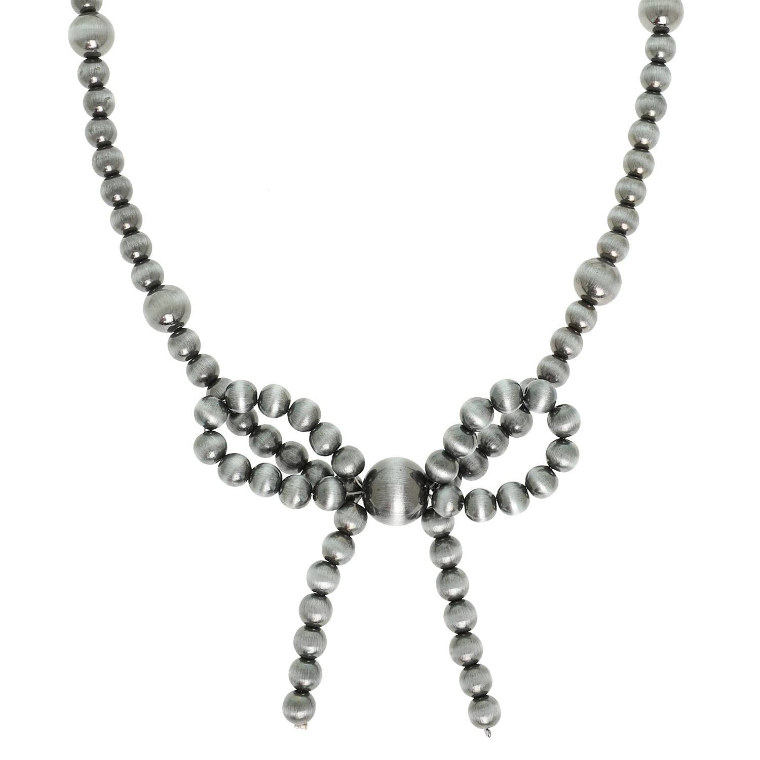 Western Bow Knot Pendant Pearl Bead Necklace : Silver