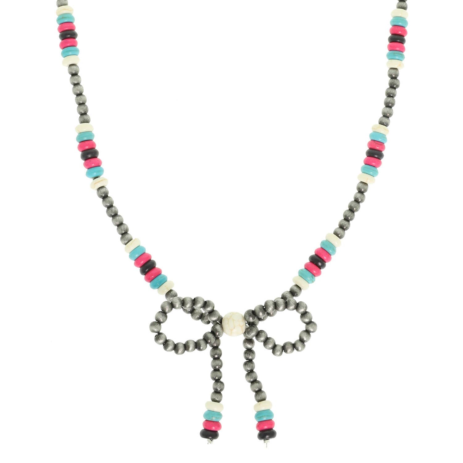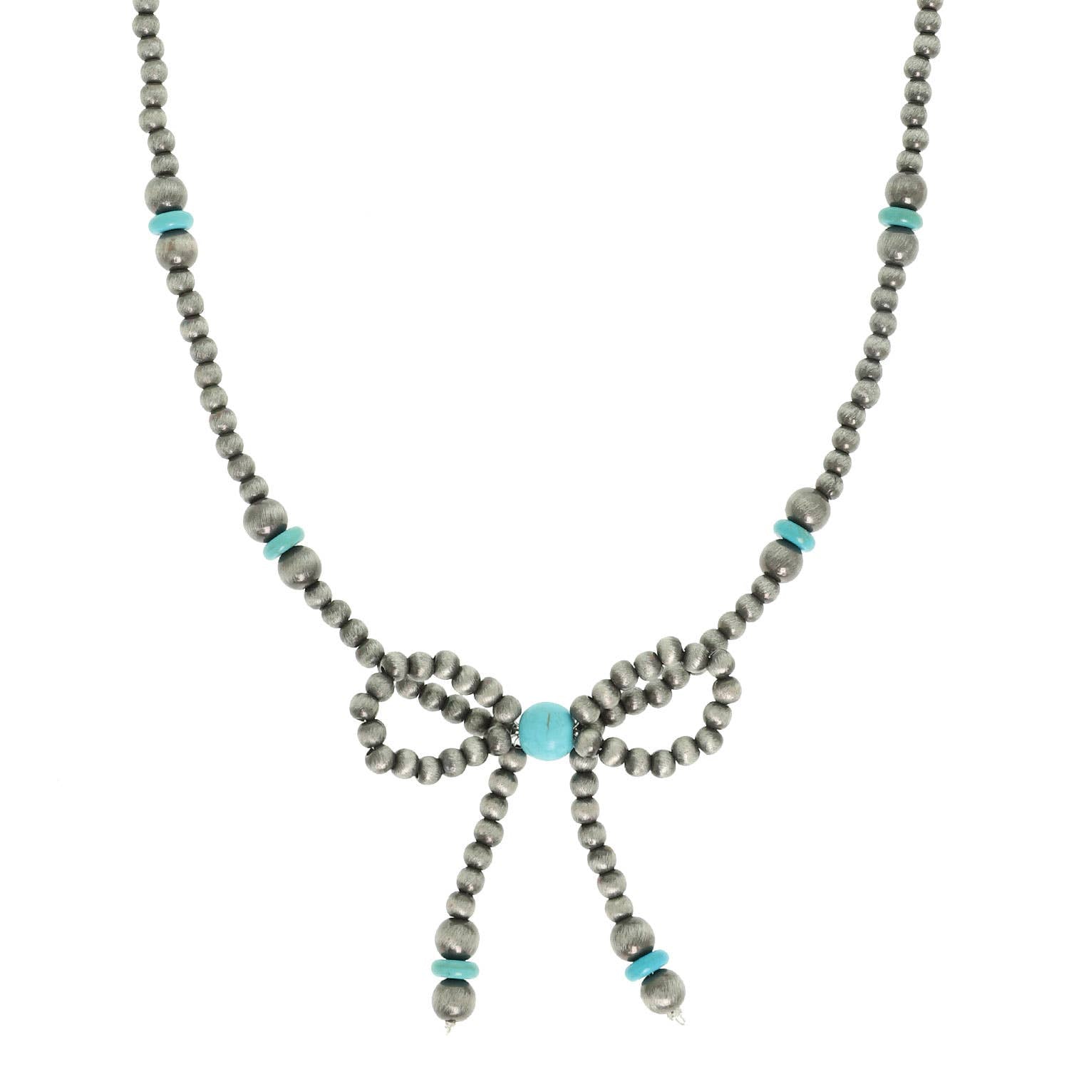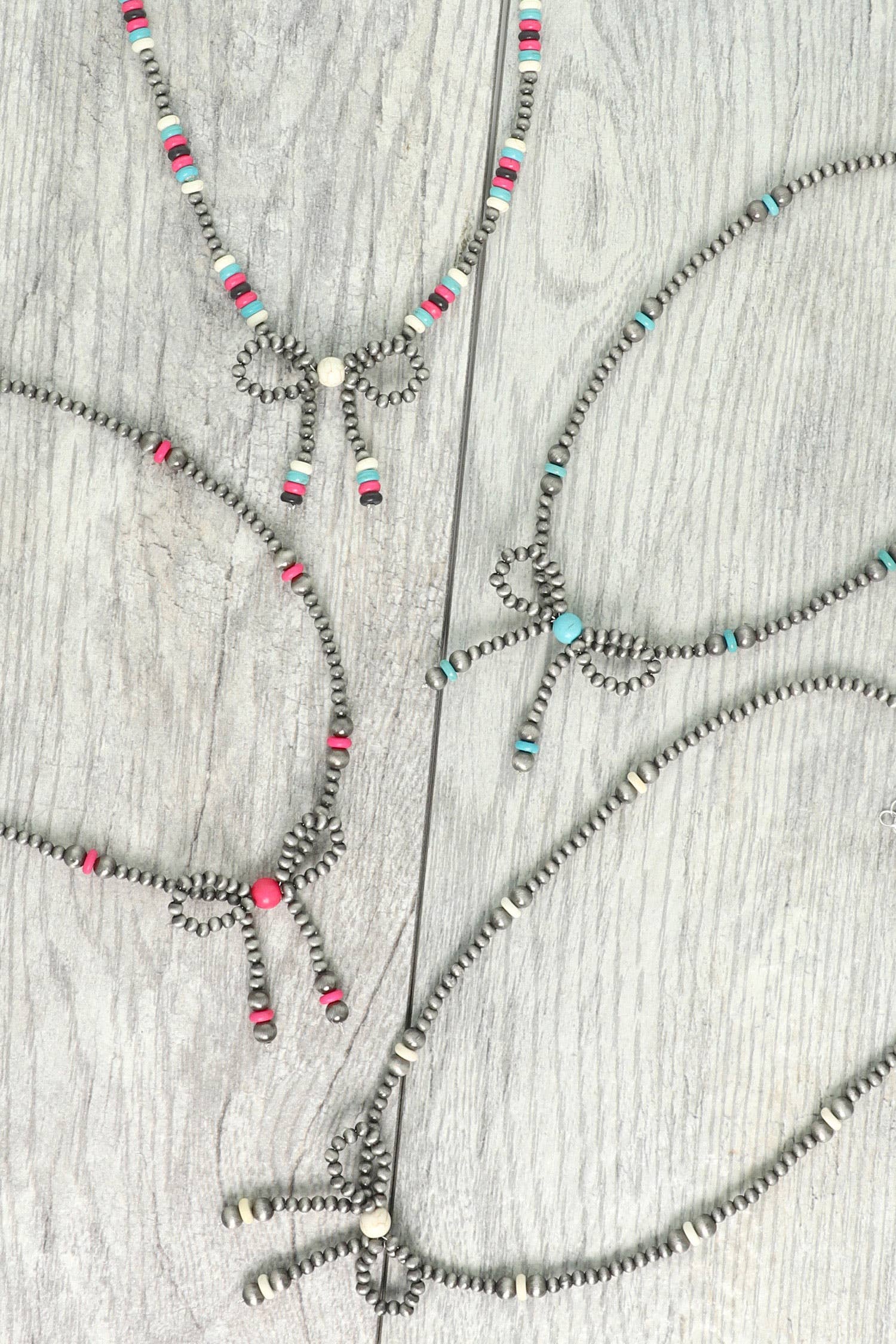 Embrace classic Western charm with this Western Marbled Turquoise Colored Pearl Bead Long Tail Bow Pendant Necklace. Featuring a striking blend of marbled turquoise-colored beads and a long tail bow pendant, this necklace offers a rustic elegance that effortlessly bridges vintage inspiration and contemporary fashion. The artisan-crafted look and distinctive silhouette make it a standout accessory, perfect for adding a touch of sophistication and heritage detail to any ensemble. Ideal for weddings, dinner parties, or upscale gatherings, it brings timeless beauty and modern Western flair to your jewelry collection.